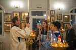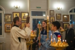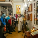 В нашем храме накануне праздника было совершено Всенощное бдение, а в день торжества - две Божественные Литургии в 6.45 и в 9 утра. Так сложилось в последние годы, чтобы работающие и учащиеся прихожане могли помолиться и причаститься в будний праздничный день.