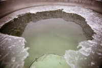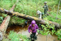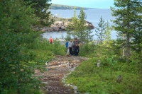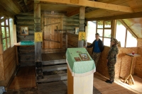 Приблизительно в восемнадцати километрах от Алапаевска, находился заброшенный железный рудник. Именно туда поехала и наша группа. «Одна из шахт рудника, которую выбрали чекисты, была шестидесяти метров глубиной. Первой столкнули в зияющую чернотой яму Великую княгиню Елизавету. Потом стали бросать остальных. Чекисты бросали туда ручные гранаты. А из глубины шахты стала раздаваться Херувимская песнь. Это пели мученики во главе с Елизаветой Феодоровной» — рассказывает экскурсовод Галина. Мы спели акафист препмч. Елисавете у Поклонного креста возле шахты.