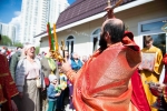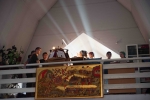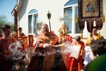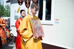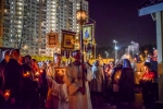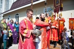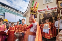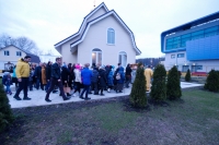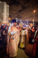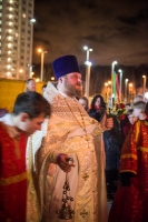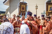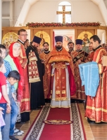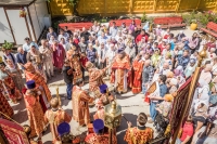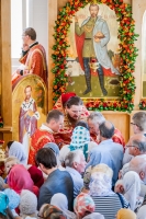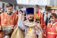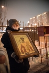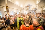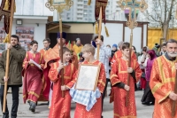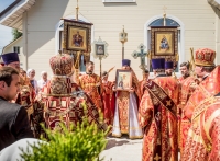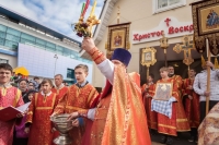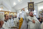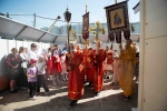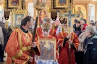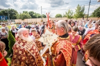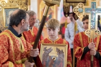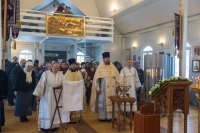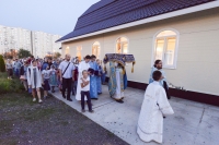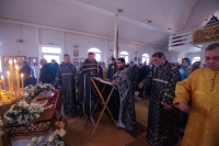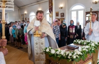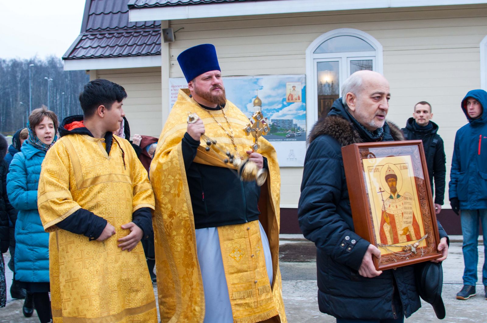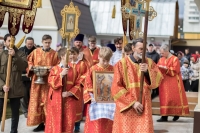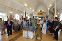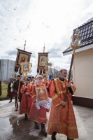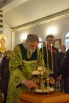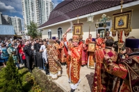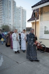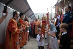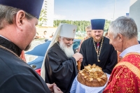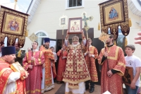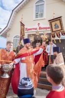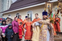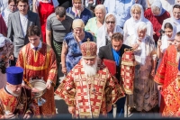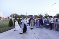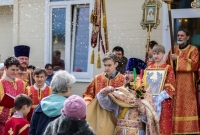 По окончании Литургии Владыка вместе с духовенством совершил Крестный ход с молебным пением и литией вокруг храма с иконой святого царя страстотерпца Николая и окропил всех присутствующих святой водой. После этого митрополит Арсений произнес приветственное слово, в котором поблагодарил всех присутствующих за совместную молитву и труды по созданию и благоукрашению храма. Также он отметил, что личность святого страстотерпца царя Николая до сих пор не всеми однозначно воспринимается, несмотря на прославление его в лике святых Русской Православной Церковью, поскольку не одно поколение было пропитано отрицательной идеологической пропагандой по отношению к царю. Но, как заметил Владыка, подобно тому, как не один десяток, а то и сотню лет тают ледники, так и к личности святого царя Николая отношение будет меняться постепенно по мере открытия исторической правды.