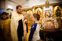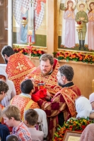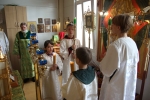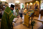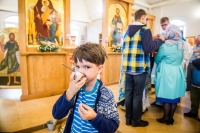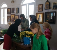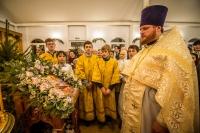 В нашем храме накануне было совершено торжественное всенощное бдение, а в день праздника - Божественная Литургия. После которой все прихожане были приглашены на традиционное чаепитие, чтобы пообщаться и подкрепиться перед занятиями в воскресной школе.