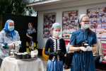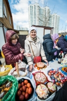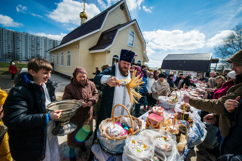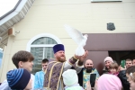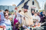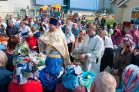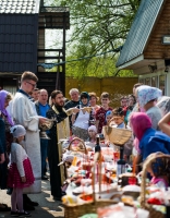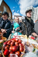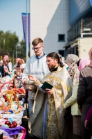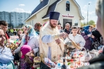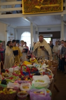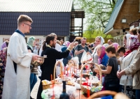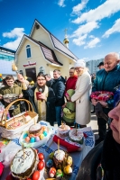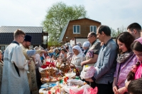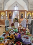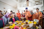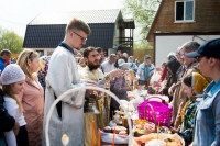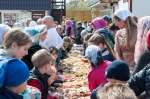 В нашем храме была отслужена Божественная Литургия, после чего по сложившейся традиции прихожане накрыли стол на улице и разговелись принесенными угощениями.