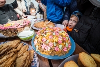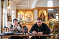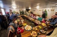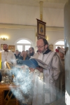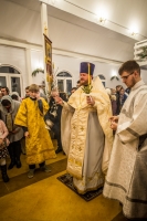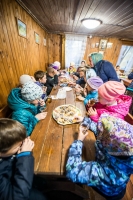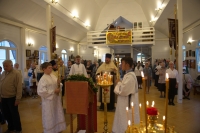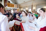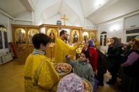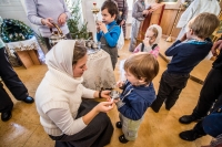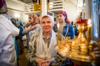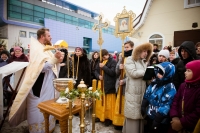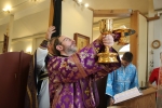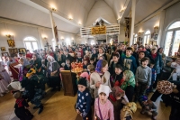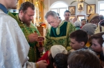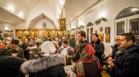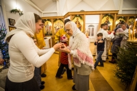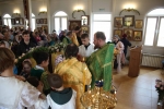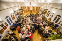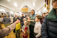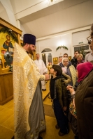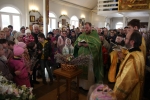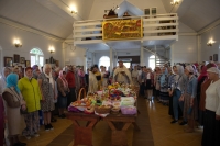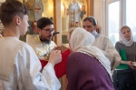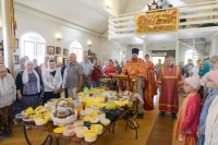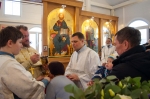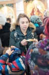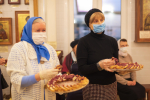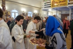 Праздничное богослужение закончилось общим чаепитием, на которое многие прихожане принесли угощения в честь праздника.