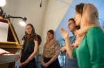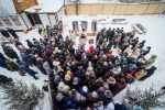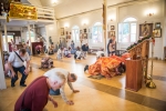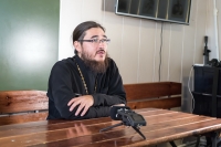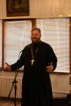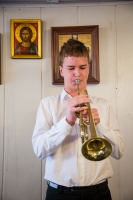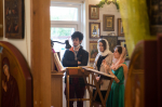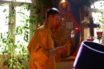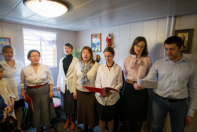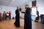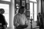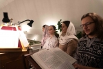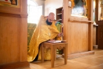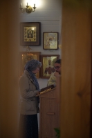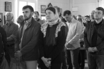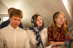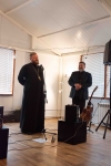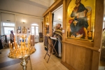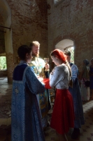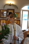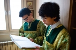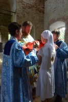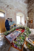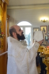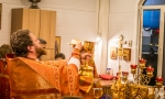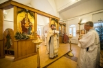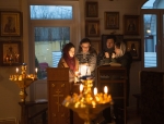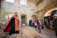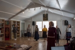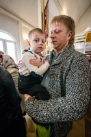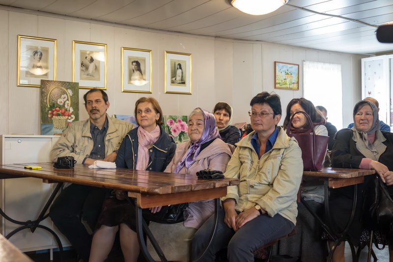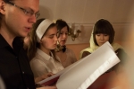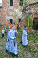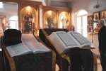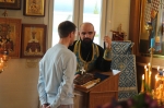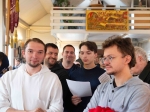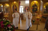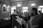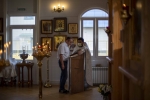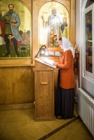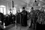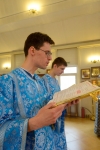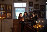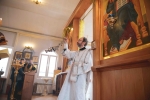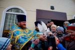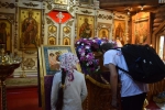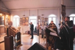 Братский молебен. Литургия в Храме святых Царственных Страстотерпцев. Хочется отметить одно удивительное украшение той службы – две пташки. На Молебне в храм залетела пара птичек. Они летали под невысокой крышей, «играли в догонялки», щебетали, словно подпевая в такт, и тем самым придавали стройной монашеской молитве какую-то детскую радость. На Литургии их не было слышно, толи вылетели их храма, толи притихли. Но как только Причастие закончилось, пташки снова закружились под куполом. Вот как «всякое дыхание хвалит Господа»!
