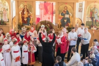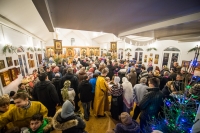На службу пришли как и местные жители с детьми, так и многие верующие люди из разных районов Москвы. Большая часть из них причастились Святых Христовых Тайн. В этот день на службу пришло много детей, часть из которых была одета в футболки действующего при храме святого страстотерпца царя Николая в Южном Чертанове молодежного клуба «Царский».