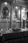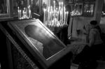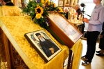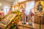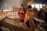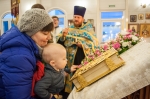Поехали в Меркушино, Симеоновское подворье Ново-тихвинского женского монастыря. «Спустя чуть более 300 лет после обретения мощей Симеона Верхотурского в Меркушино произошло новое чудо – в 2002 году были обретены нетленные мощи 22-летнего священника отца Константина Богоявленского, который был убит большевиками в 1918 году» — пишут в житии священномученика. Приложились к мощам.