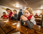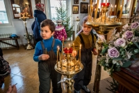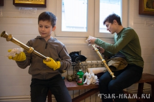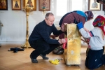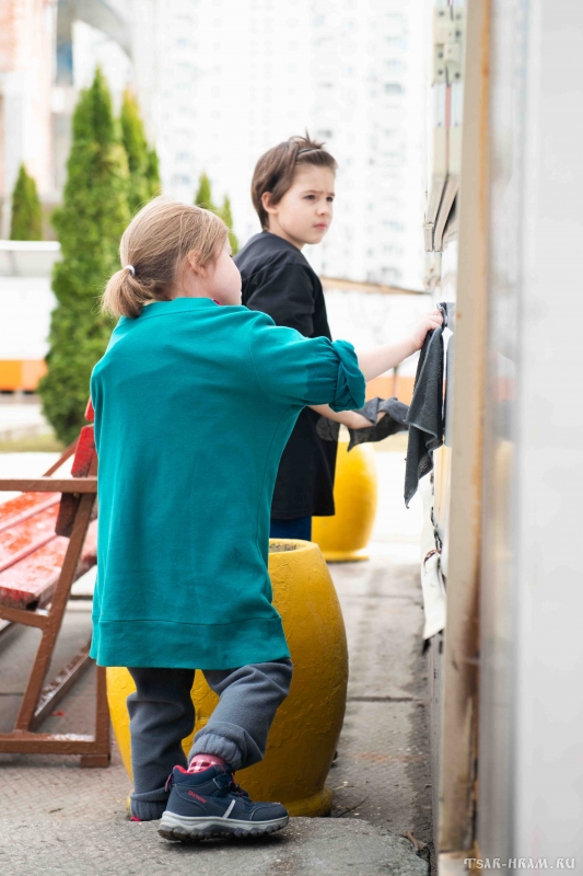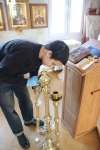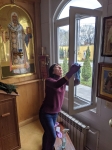 В это время взрослые прихожане трудились, готовя храм к великопостным богослужениям, чтобы встретить время покаяния и духовного сосредоточения в должном порядке и благоговении.