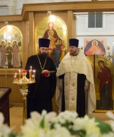 Также Владыке сослужили протодиакон Валерий Щеглов, клирик храма Воскресения Христова в Сокольниках, диакон Александр Горлов, клирик храма Казанской иконы Божией Матери в Коломенском, диакон Дмитрий Гришин, клирик храма Новомучеников и исповедников Российских на Бутовском полигоне и диакон Александр Болдырев, клирик Церкви Воскресения Христова в городе Медон, Франция, РПЦЗ.