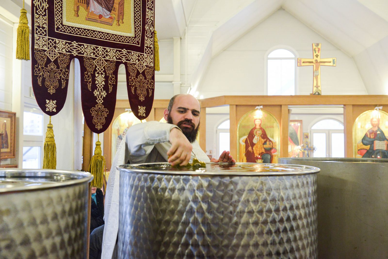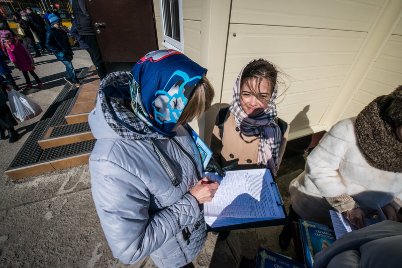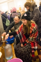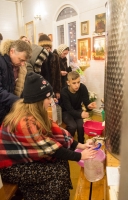 Волонтеры из числа прихожан встречали людей, приходивших за святой водой, отвечали на возникавшие у них вопросы, помогали сориентироваться в храме, предлагали миссионерские материалы и Святое Евангелие, а также организовали дежурство по розливу Крещенской воды во избежание очередей и скопления большого количества ожидающих.