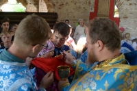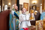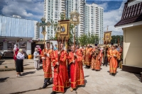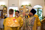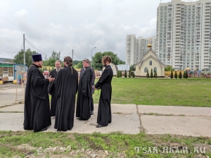 17 июля в день памяти небесного покровителя нашего храма – святого страстотерпца царя Николая – праздничную Божественную Литургию впервые возглавил Высокопреосвященнейший Арсений, митрополит Истринский, первый викарий Святейшего Патриарха, управляющий Центральным и Южным викариатствами города, в сослужении с благочинным храмов Донского округа протоиереем Александром Фарковцом, настоятелем храма Архистратига Божия Михаила в Царицыне протоиереем Петром Винокуровым, настоятелем церкви Рождества Христова в Варварино протоиереем Александром Зубковым и настоятелем нашего храма иереем Тимофеем Куропатовым.