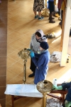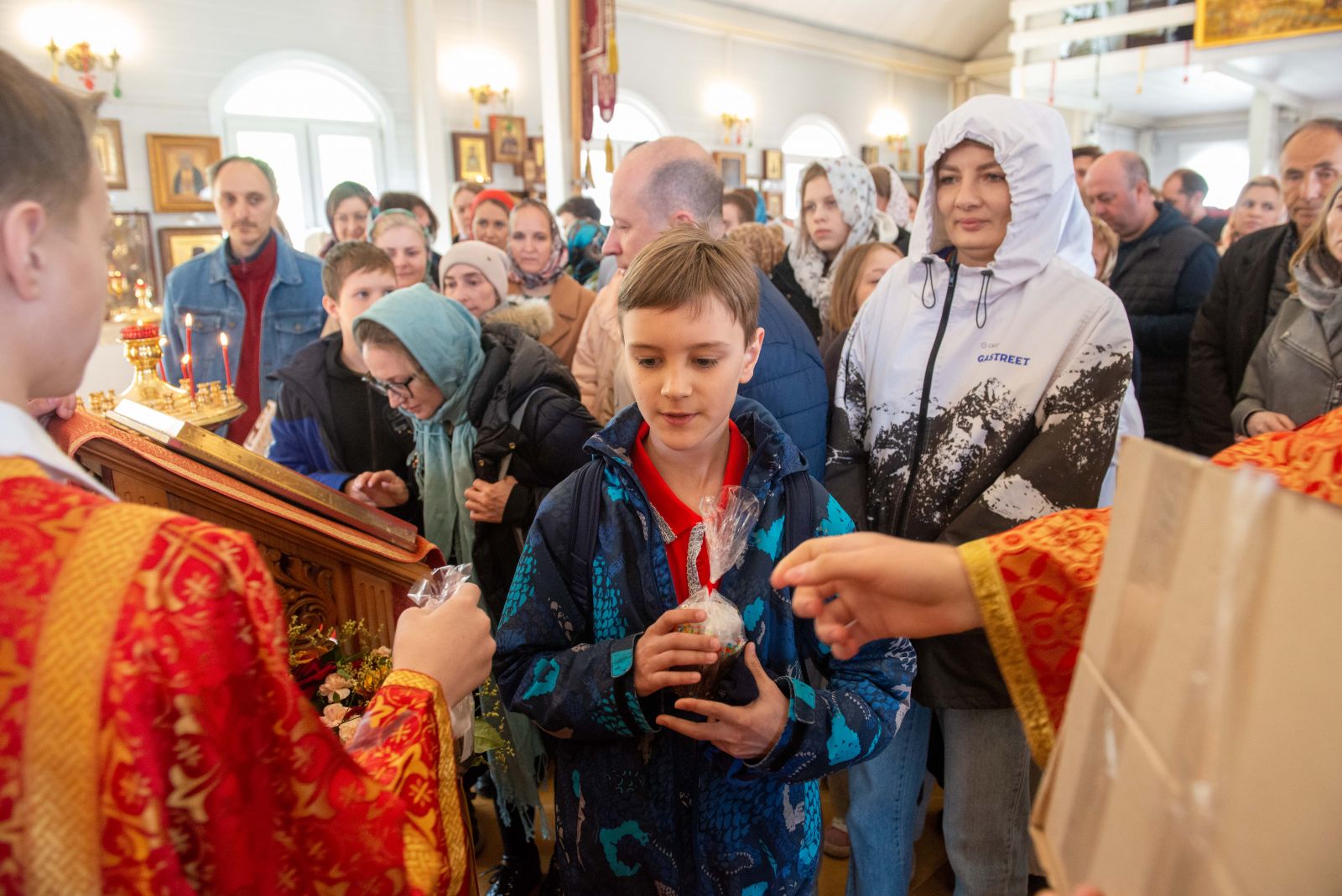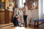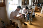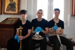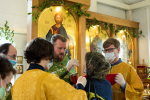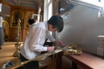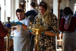 С самого утра приход наполнился движением: кто-то наводил порядок в храме, кто-то занимался украшением, кто-то помогал в хозяйственных делах. Особенно радостно было видеть, как активно в общем деле участвовали дети — с искренним старанием и вниманием они помогали взрослым, внося свою лепту в подготовку к празднику.