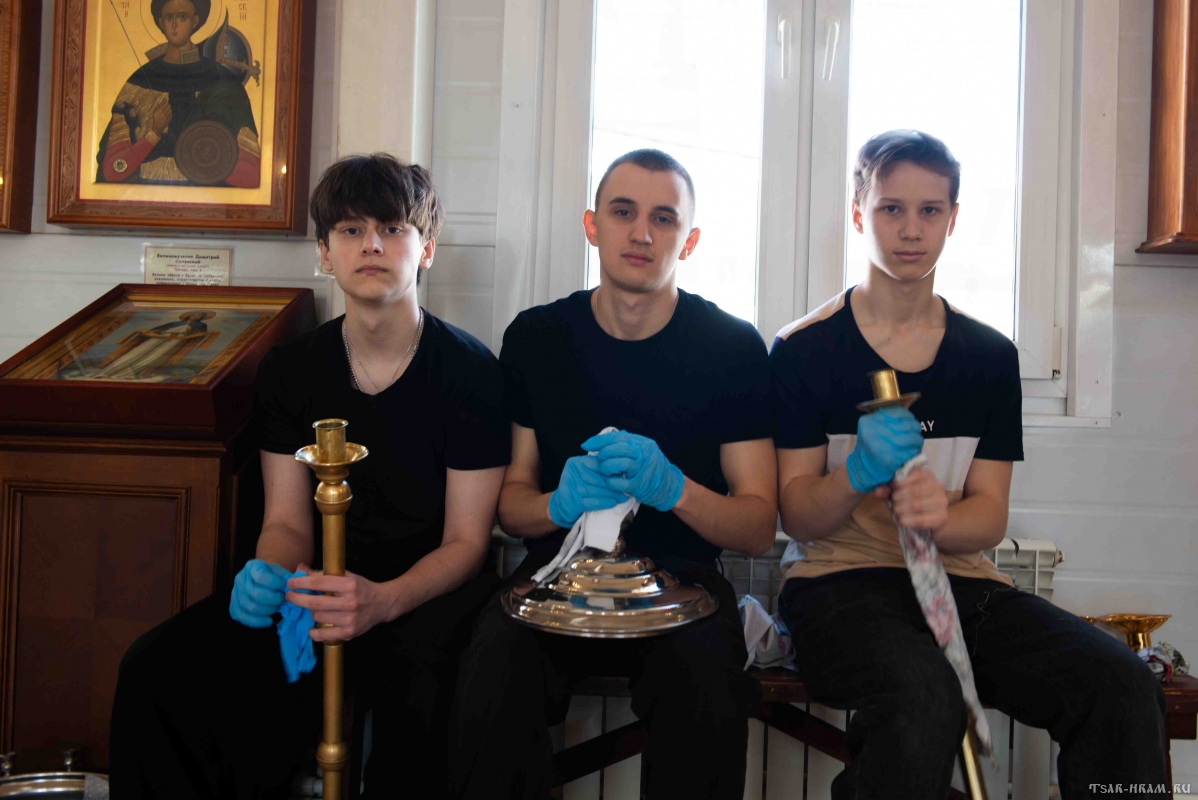 В этом совместном труде чувствовалась особая тишина и сосредоточенность — как внешняя подготовка постепенно становилась и внутренней. Через простые дела каждый готовит не только храм, но и собственное сердце к встрече Пасхи.