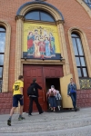 Первым посетили Храм-Памятник на Крови во имя Всех святых, в земле Российской просиявших. Храм был построен в 2003 г. на месте Ипатьевского дома, где в ночь с 16 июля на 17 июля 1918 года был расстрелян последний российский император Николай II и его семья. Пропели акафист святым Страстотерпцам в Храме на Крови.