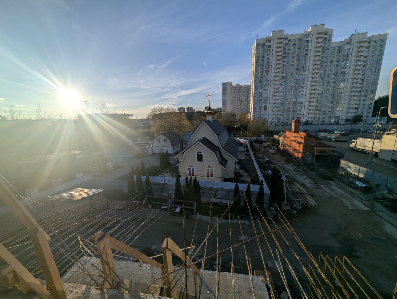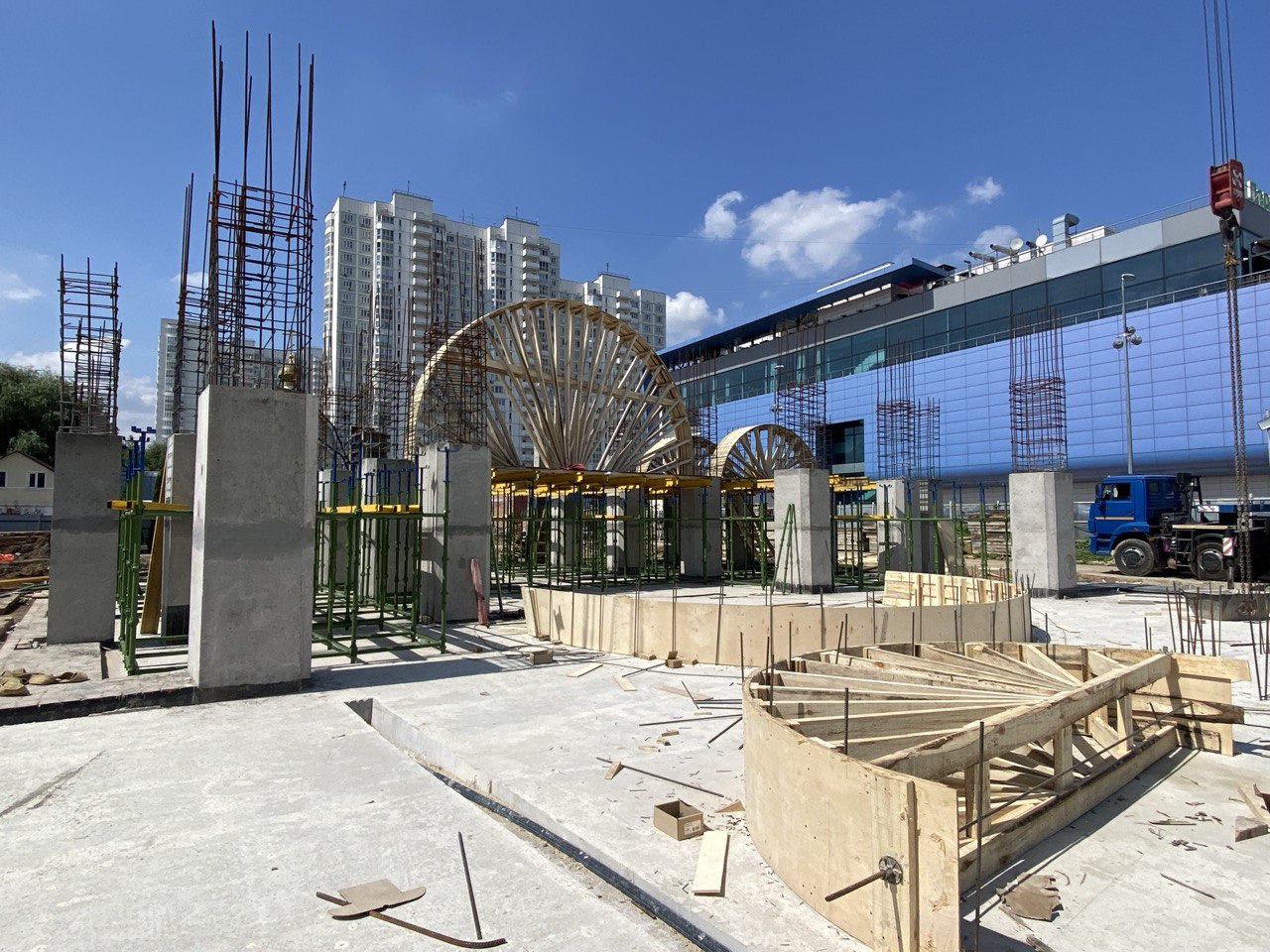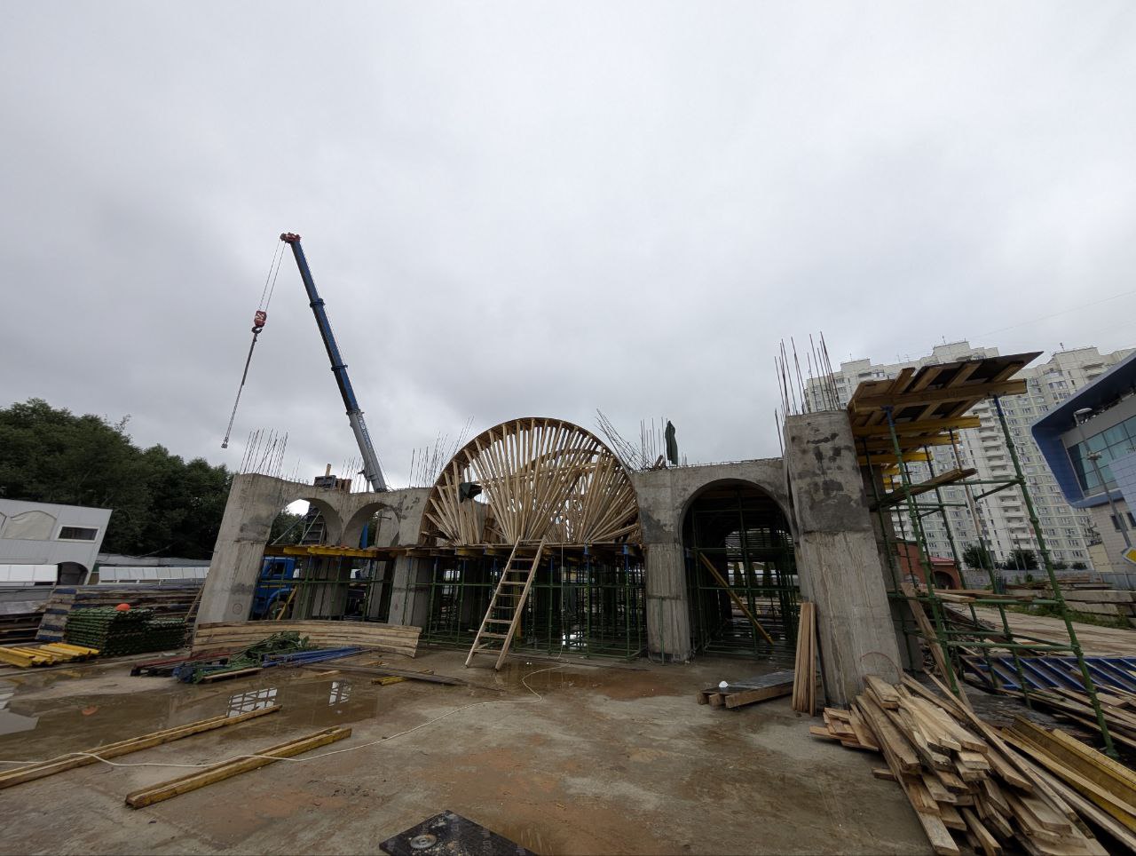 Январь 2026 года. Свежие новости со строительной площадки: выставлены леса и опалубка для изготовления основного верхнего перекрытия. Идет армирование, которое скоро будут заливать бетоном. Останется изготовить барабаны и апсиду алтаря.