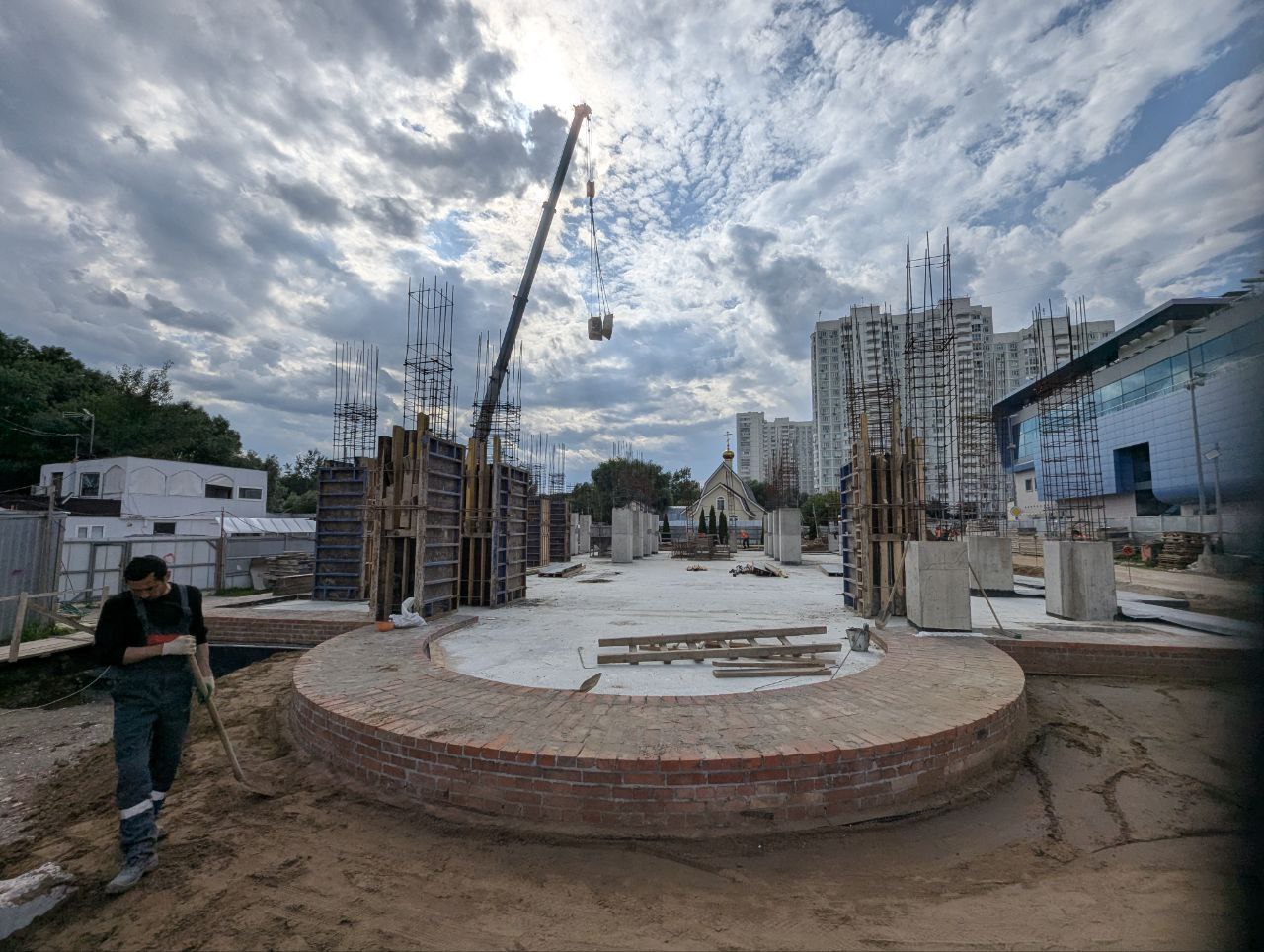 После заливки бетона планируется разборка лесов, а затем — следующий важный этап: кирпичная кладка стен.