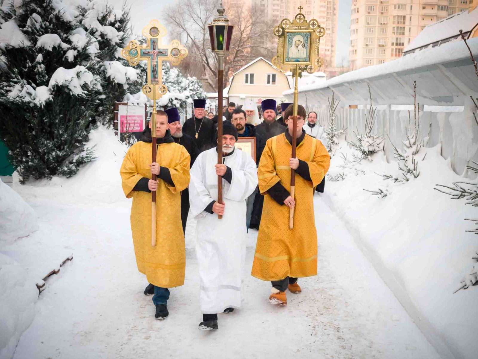 По завершении Божественной Литургии состоялся крестный ход к строящемуся каменному храму в честь святого царя Николая. На строительной площадке будущего собора был совершен краткий молебен о благополучном строительстве. Затем, по благословению Святейшего Патриарха Кирилла, в основание строящегося храма была заложена капсула с грамотой об освящении строящегося храма.
